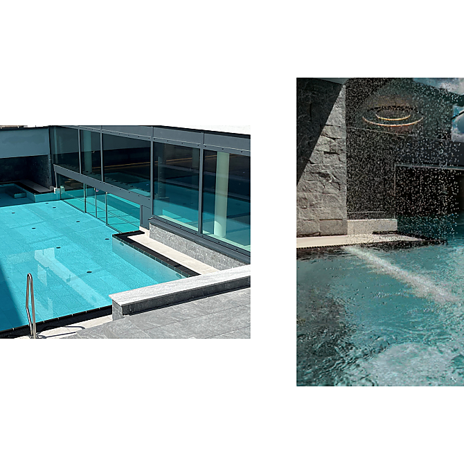 Ob Sommer oder Winter, drinnen oder draußen- wir haben für jeden etwas dabei! Genießen Sie den Indoor Pool- oder schwimmen Sie nach draußen zu unserem Außenpool mit erfrischender Wasserwand! Unsere jüngsten Gäste kommen in unserem Kleinkinderbecken zu sicherem Spiel und Spaß!