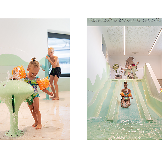 Unsere Kleinsten fühlen sich im liebevoll gestalteten Kleinkinderbecken rundum wohl und können spielerisch die Wasserwelt entdecken. Genießen Sie die lebendige und fröhliche Atmosphäre, die zum Verweilen und gemeinsamen Glücksmomenten mit Ihren Liebsten einlädt.