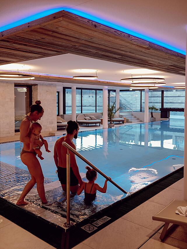 Ob Sommer oder Winter, drinnen oder draußen- wir haben für jeden etwas dabei! Genießen Sie den Indoor Pool- oder schwimmen Sie nach draußen zu unserem Außenpool mit erfrischender Wasserwand! Unsere jüngsten Gäste kommen in unserem Kleinkinderbecken zu sicherem Spiel und Spaß!